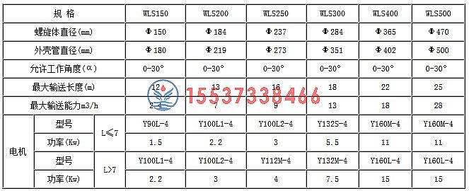 無(wú)軸螺旋輸送機(jī)參數(shù)表如下:
